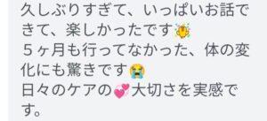 ↑5ヶ月ぶりにケアを受けたお客様の声